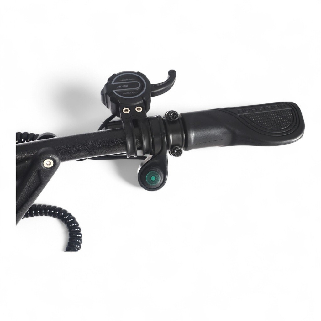 D'autre part, vous aimerez particulièrement le mode boost de cette Sonic modèle A. Vous trouverez sur la gauche du guidon, un commodo avec un bouton rouge, il s'agit du boost. Lorsque vous appuyez dessus, il s'allume et vous délivrez toute la puissance de la Dualtron Sonic Alien pendant quelques secondes. Lorsque le boost est terminé, le bouton s'éteint.